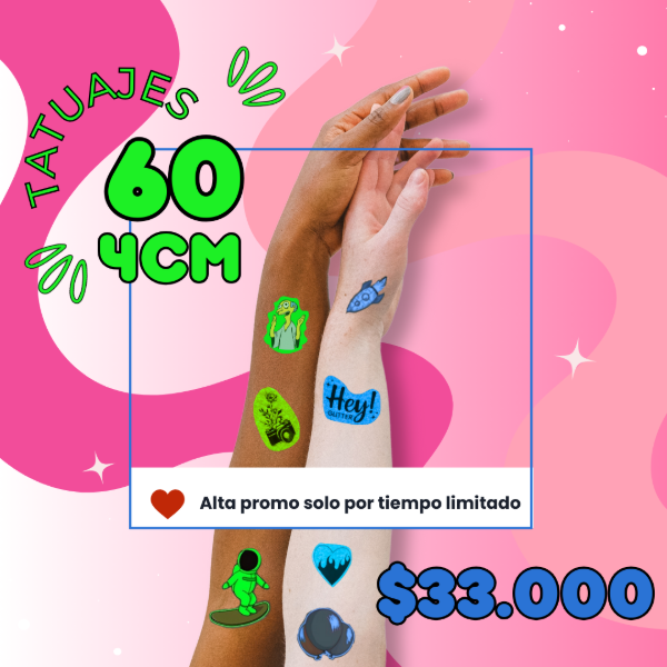 Son 30 o 60 tatuajes temporales de 4cm que brillan en la oscuridad (verde o azul)